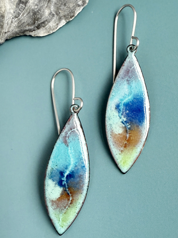 Gorgeous blue round enameled copper earrings!! What a striking color!! Perfect for summer!! The scrolled design is so lovely too!! Thank you for a another really terrific pair of earrings!! Kathy